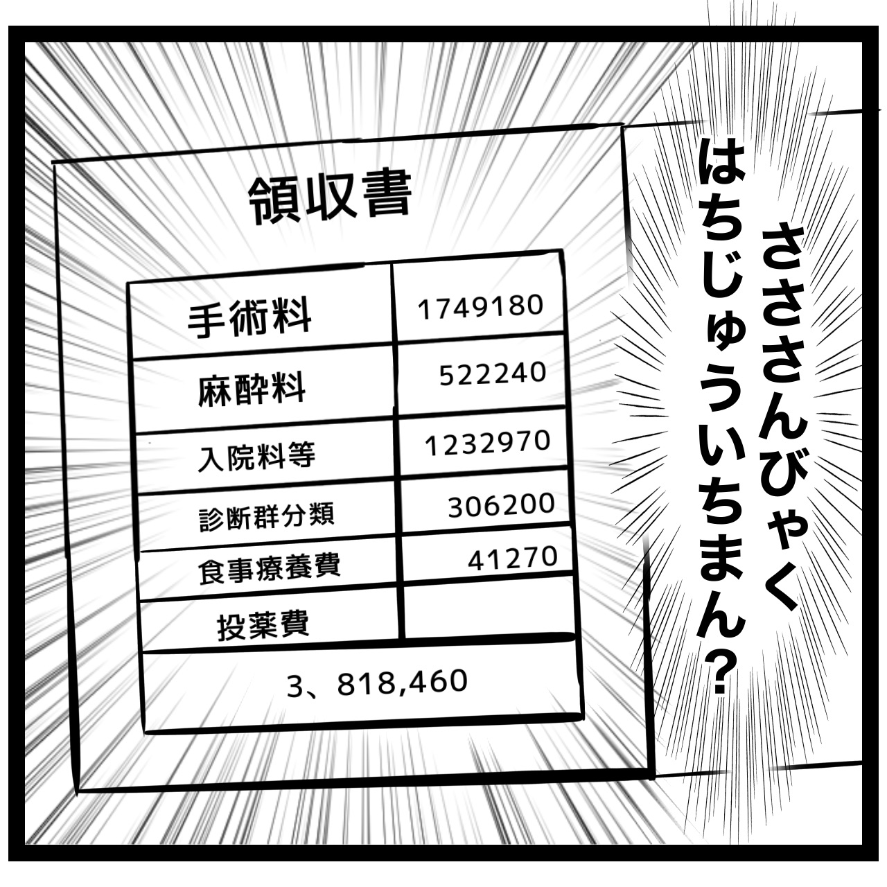 わかります!我が家も手術したとき、同じくらい額がいきました。ドン引きして、「ぶっ、分割しか無理ですが…」で、子ども医療費で無料で、部屋代のみの請求でした✨本当、国か、市か解んないですが、感謝ですよね!