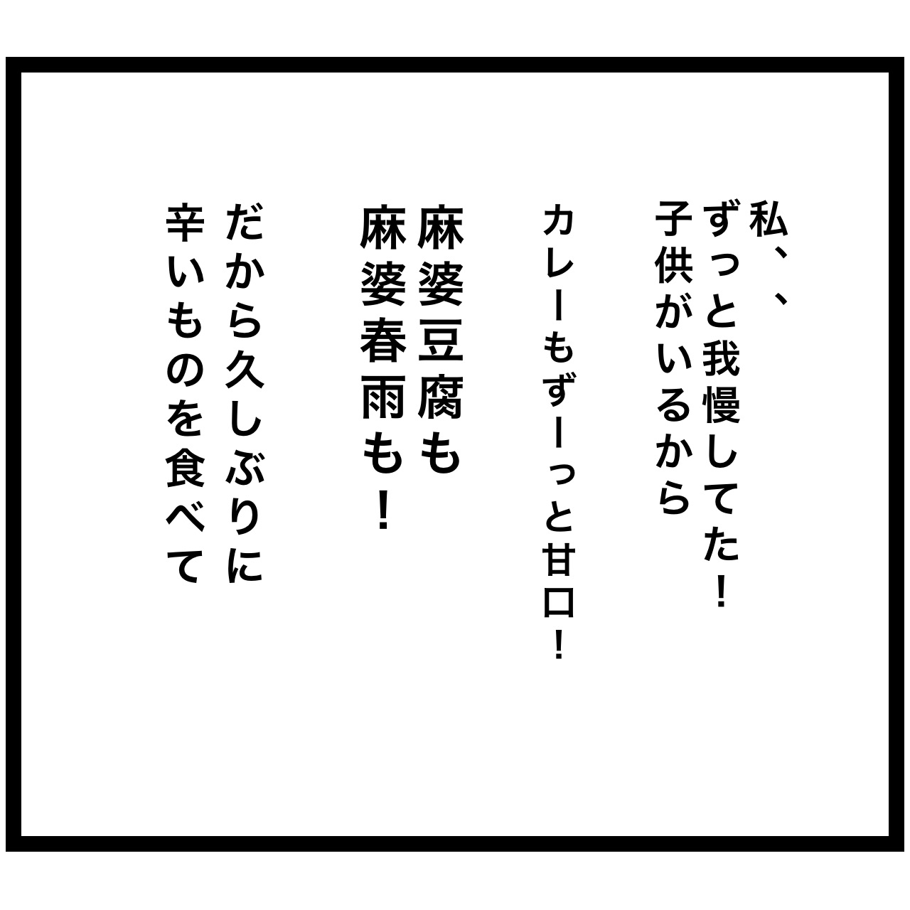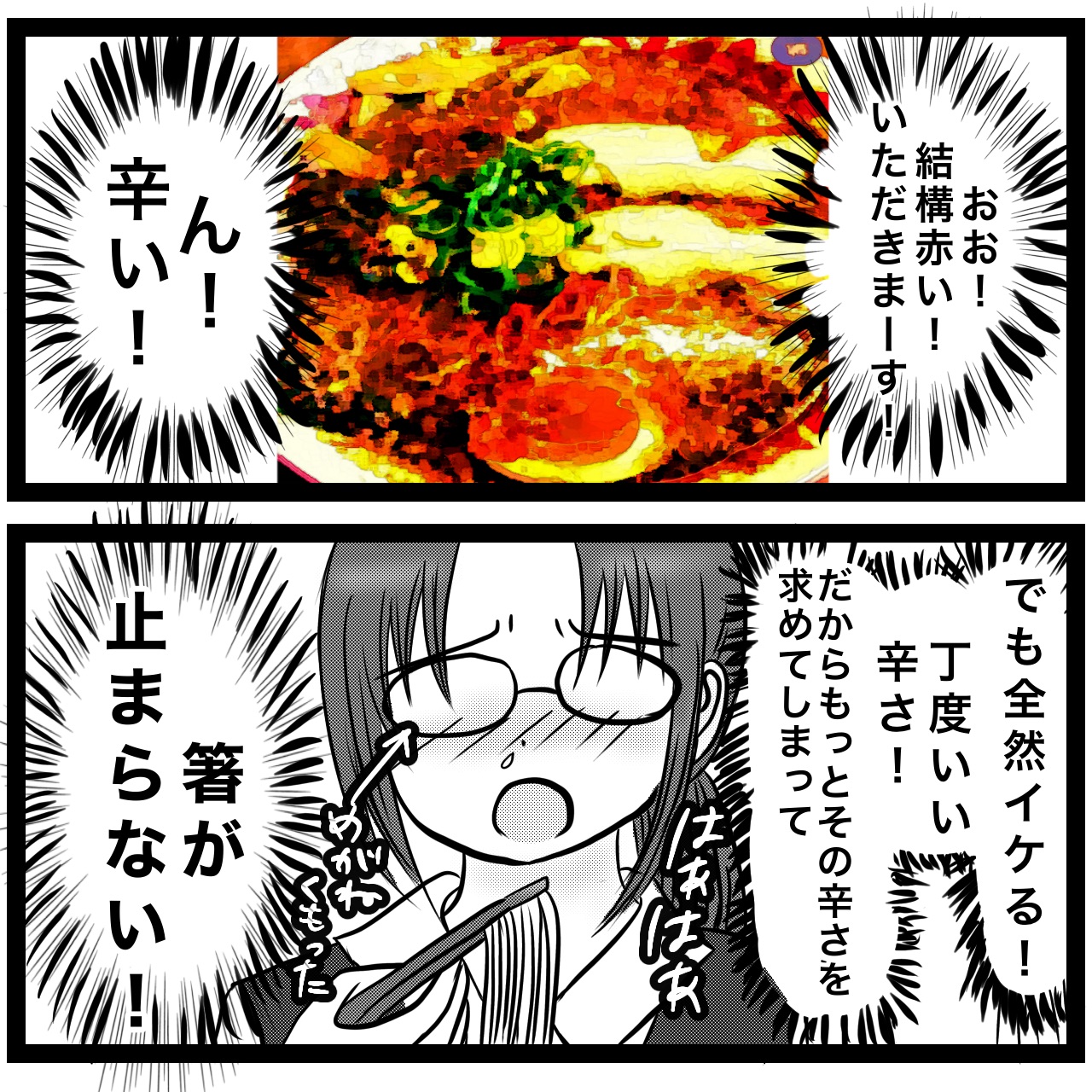 わかりみです。私は韓国袋麺「ブルダック」食べていました。私が泣きながら食べるから、子どもも半泣きで「食べないでぇ」とすがりついてきて…こんにな心配してくれて…と私もまた泣いて、辛い物のおかげでスッキリした思い出です。