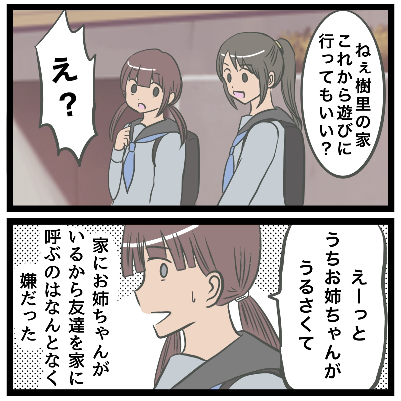 姉育てに疲れて一時保護所に入った話②2023.03.17姉育てに疲れて一時保護所に入った話ヤングケアラー きょうだい児、発達障害 1話はこちら↓姉育て1話↑すくパラさん記事です!中学生になって 続きはすくパラさんにて↑続きはすくパラさんのサイトからお読み頂けます↑ 1 コメントはこちら 同じカテゴリの記事 姉育てに疲れて一時保護所に入った話 終 姉育てに疲れて一時保護所に入った話12 姉育てに疲れて一時保護所に入った話11 姉育てに疲れて一時保護所に入った話10 姉育てに疲れて一時保護所に入った話9 姉育てに疲れて一時保護所に入った話8 姉育てに疲れて一時保護所に入った話7 姉育てに疲れて一時保護所に入った話6 姉育てに疲れて一時保護所に入った話5 姉育てに疲れて一時保護所に入った話4 姉育てに疲れて一時保護所に入った話3 姉育てに疲れて一時保護所に入った話2 姉育てに疲れて一時保護所に入った話1 姉育てに疲れて一時保護所に入った話12 姉育てに疲れて一時保護所に入った話11 姉育てに疲れて一時保護所に入った話10 姉育てに疲れて一時保護所に入った話⑨ 姉育てに疲れて一時保護所に入った話⑧ 姉育てに疲れて一時保護所に入った話⑦ 姉育てに疲れて一時保護所に入った話⑥ 姉育てに疲れて一時保護所に入った話⑤ 姉育てに疲れて一時保護所に入った話④ 姉育てに疲れて一時保護所に行った話③ 姉育てに疲れて一時保護所に入った話② 姉育てに疲れて一時保護所に入った話① 前の記事 息子が突然歩けなくなりまして32 2023.03.13次の記事 突然息子が歩けなくなりまして33 2023.03.21アプリなら通知ですぐ読める! NAPBIZブログ